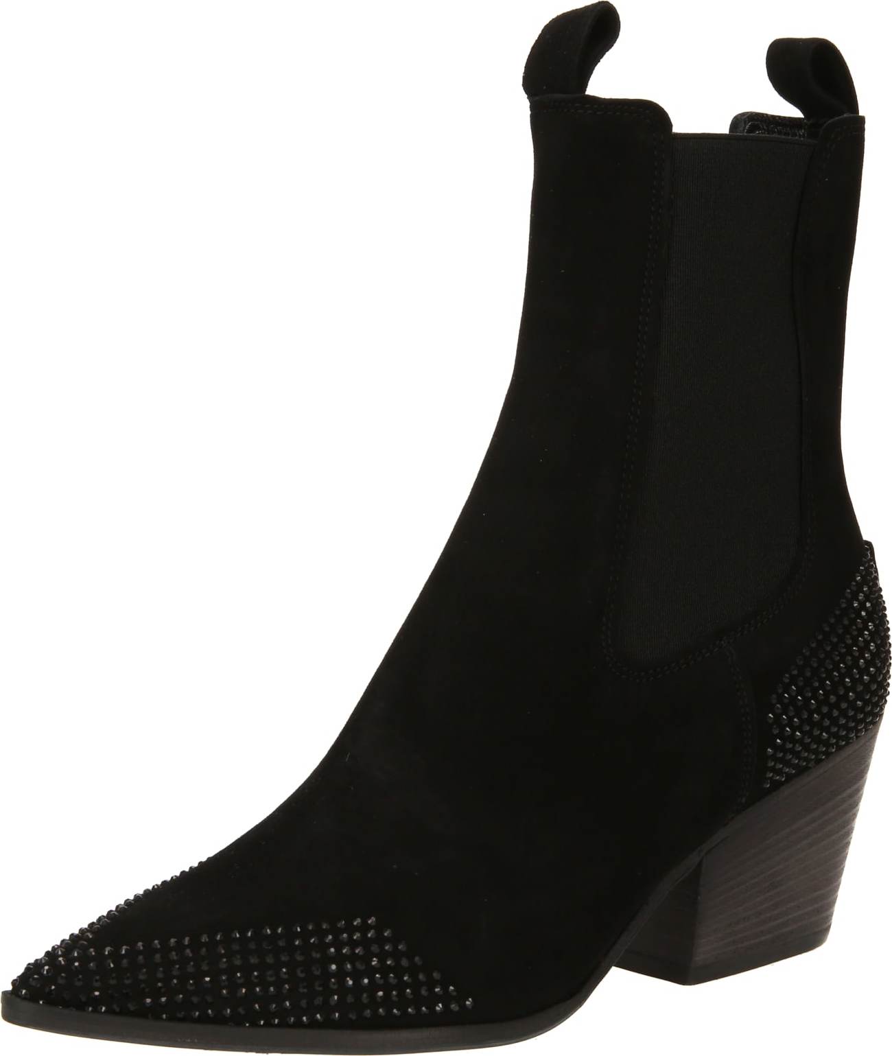 Design: Pružné vložky, Poutko přes patu, Jazyk boty; Typ podpatku: Široký podpatek; Materiál: Kůže; Vzor: Jednobarevný; Materiál: Semišová kůže; Špička boty: Špičatá špička; Extra: S ozdobnými kameny, Aplikace, Švy tón v tónu, Flexibilní podešev; Výška podpatku: Střední podpatek (3-7 cm)