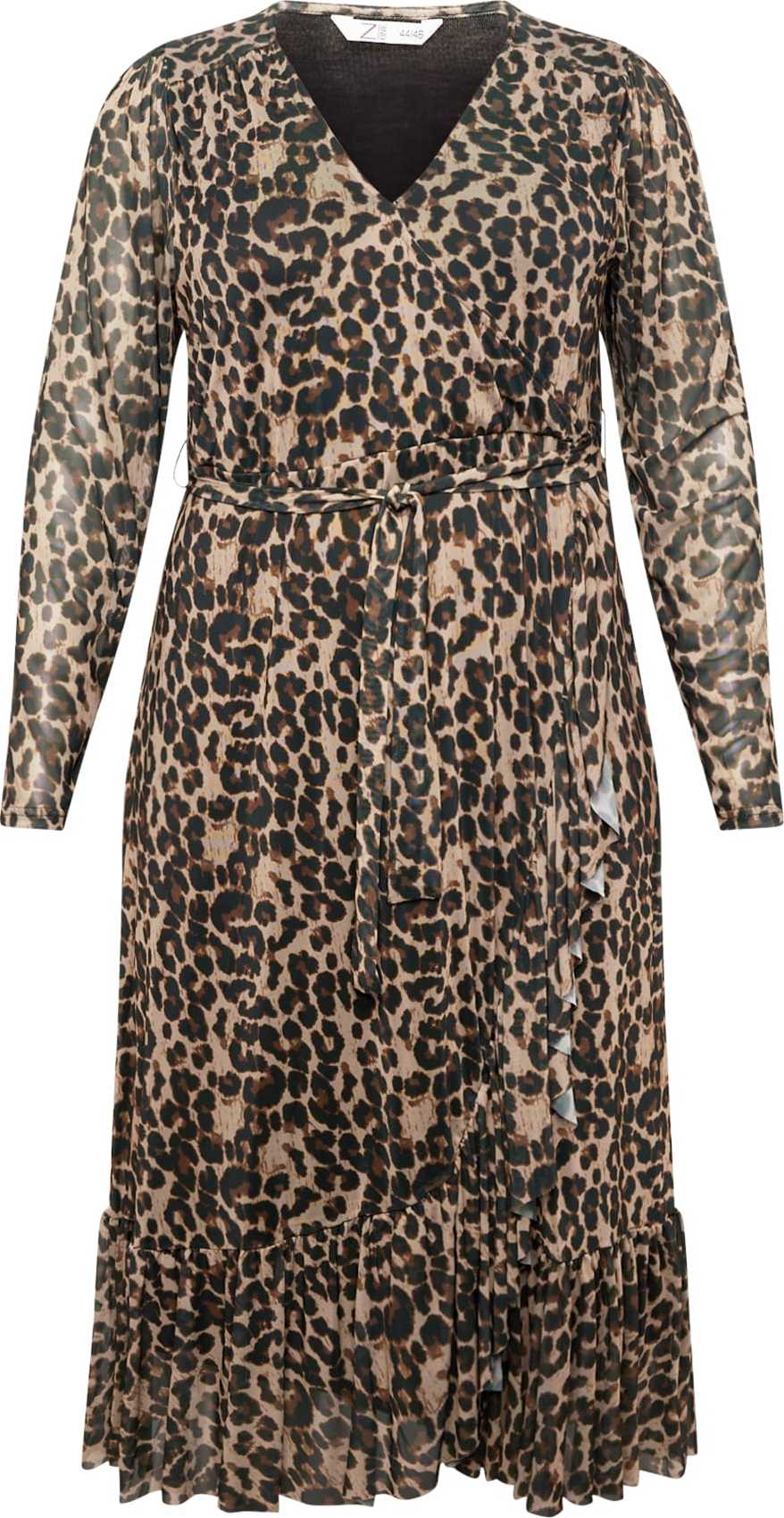 Design: Prošitý spodní lem, Se spodničkou, S páskem; Výstřih: Výstřih do V; Vzor: Zvířecí potisk; Detaily: Volán, Nařásněné, Zavinování; Extra: Lehce průsvitné, Celoplošný vzor, Splývavá látka; Délka: 7/8 délka; Střih: Normální střih; Délka rukávu: Dlouhý rukáv