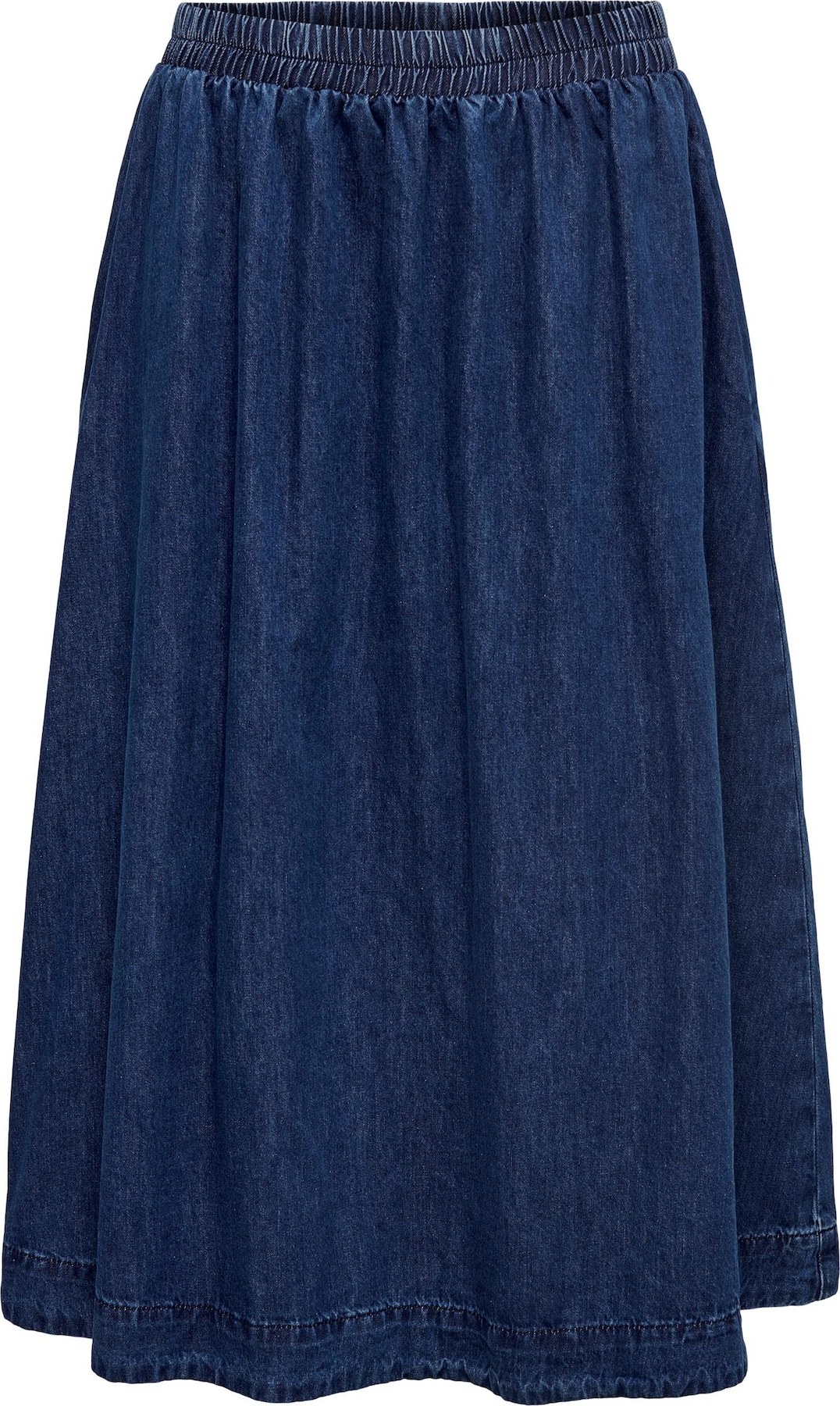 Design: Prošitý spodní lem, Rozšiřující se střih, Elastický pas/okraj, Boční průhmatové kapsy; Materiál: Džínovina; Vzor: Jednobarevný; Tvar sukně: Sukně áčkového střihu; Detaily: Nařásněné; Extra: Švy tón v tónu, Efekt oprání, Měkký povrch; Délka: 3/4 délka; Střih: Normální střih